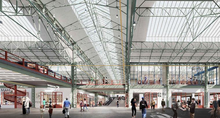 Déjà, le bâtiment (structure métallique et façade-rideau), qui a compté parmi les plus grands ateliers d’automobiles européens en son temps, était le fruit d’une collaboration franco-belge, l’œuvre des architectes Ravazé, Dumont et Van Goethem. En avril 2017, sept équipes ont été invitées à réfléchir sur ce nouvel équipement culturel intitulé Kanal-Centre Pompidou, un concours dont le défi était de trouver de la compacité dans cette grande capacité. Le jury présidé par Roger Diener a retenu le projet de l’équipe internationale, spécialement constituée pour mener à bien cette mutation, qui regroupe les architectes belges de noAarchitecten, suisses d’EM2N et britanniques de Sergison Bates. Se refusant à tout geste spectaculaire, les lauréats ont opté pour “faire confiance au déjà-là” ; ils sont ainsi venus se glisser dans le bâtiment pour intégrer trois “boîtes” sous la charpente existante, volumes correspondant à autant d’éléments avec leurs contraintes spécifiques : un musée d’art moderne et contemporain (15 000 m2), un centre d’architecture (le Civa) et un auditorium de 400 places. Jouer sur la transparence pour inviter à entrer dans ce grand vaisseau de verre, c’est le maître mot, sur le boulevard avec la transformation en entrée principale de l’ancien showroom de la marque aux chevrons, comme sur le canal, où le linéaire de vitrines joue tout simplement les attracteurs. Histoire de préfigurer le futur lieu, une première programmation s’offre au public dès le mois de mai 2018.