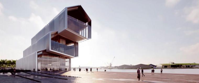 Ce passage de l’industriel au culturel va donner naissance à un musée d’histoire maritime dont l’ouverture est prévue en 2022. L’équipement doit s’ancrer, à l’arrière du front de mer, sur le bassin Duguay-Trouin, connu notamment pour le rassemblement des bateaux de course de la Route du rhum. Lauréat sur le fil (contre l’équipe barcelonaise Barozzi / Veiga, ex æquo), Kengo Kuma a imaginé une superposition de volumes en porte à faux qui s’inspire du profil de la poupe des bateaux marchands du temps des corsaires. D’où un jeu d’encorbellements et de retraits. Reprenant par ailleurs le vocabulaire industriel des hangars voisins, l’architecte japonais adopte une morphologie en longueur pour concevoir un ensemble tout en zinc (clair, mat et brut), dont il assure la porosité visuelle sur tout l’environnement.