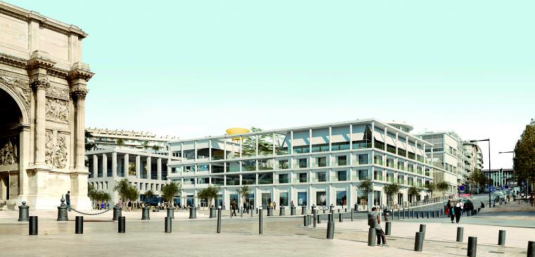 L’École nationale supérieure d’architecture de Marseille va quitter son site historique de Luminy près des calanques pour s’installer en plein centre-ville à la porte d’Aix, au pied de la gare Saint-Charles. La jeune équipe NP2F - avec les agences Marion Bernard de Marseille et Point suprême d’Athènes et Jacques Lucan - s’est imposée dans le concours (devant Marc Barani, Aires Mateus, W-Architectures) organisé pour la création de ce nouvel Institut méditerranéen de la ville et des territoires, qui hébergera aussi un institut d’urbanisme (IUAR) et l’antenne de l’ENS de paysage de Versailles. Face à l’arc de triomphe, et marquant l’angle de l’esplanade, le futur IMVT refuse le modèle du monolithe introverti pour s’ouvrir sur la cité phocéenne.