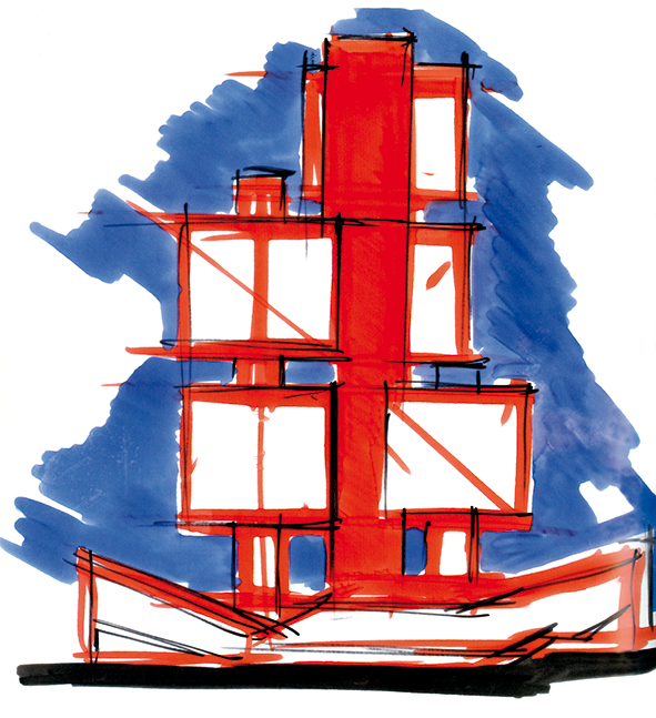 Il aimait noircir le papier avec ses feutres. Et ses huiles sur toile n’avaient souvent pas de titre. Dans tous les cas son trait était affirmé. À l’image du ton de sa voix. Architecte et artiste, cinéaste et designer, Pierre Parat s’est éteint le 8 octobre dernier à l’âge de 91 ans. “Tout a commencé pour moi par le dessin”, écrivait-il dès la première ligne de son grand livre Parat par Pierre Parat, publié en 2010 aux éditions Cercle d’art. En 2012, la Cité de l’architecture & du patrimoine, consciente que l’œuvre architectural est cosigné avec Michel Andrault (ils ont reçu ensemble le Grand Prix de l’architecture en 1985), avait mis le projecteur sur l’œuvre dessiné ainsi que sur les courts métrages qu’il aimait à tourner1. Dès 1970, armé de sa caméra Beaulieu, il filmait des villes (Calcutta, Venise, New York…). “J’ai toujours défendu trois points majeurs : l’expression des circulations verticales et horizontales, l’éclatement des volumes, l’affirmation des structures”, martelait-il. La basilique de Syracuse (dessinée en 1957, inaugurée en 1994), le siège de l’agence Havas à Neuilly (conçu en 1968), la faculté des lettres de Paris-Tolbiac (1972) et la tour Totem, pièce majeure du Front de Seine à Paris (1979), en sont les meilleures illustrations. S’y ajoute le palais omnisports de Paris-Bercy livré en 1983 qui, avec ses façades obliques végétalisées, s’est révélé le premier bâtiment-paysage de la capitale.