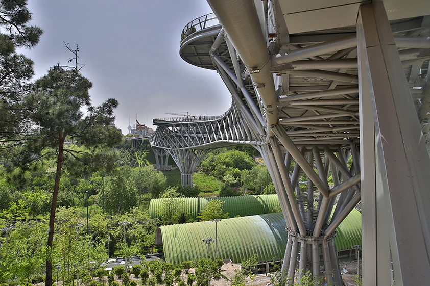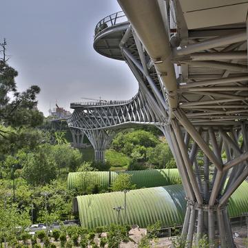 - Le pont piétonnier Tabiat à Téhéran (Iran), Diba Tensile Architecture (Leila Araghian, Alireza Behzadi) architecte.